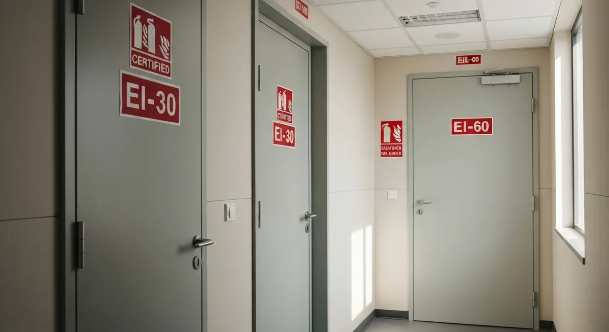 Также встречается маркировка E30, E60 (без I) — это двери, обеспечивающие только целостность, но не теплоизоляцию. Их применение ограничено: такие конструкции допустимы там, где требуется только удержание пламени, но не защита от теплового воздействия. В большинстве жилых и общественных зданий Казахстана требуются именно EI-конструкции.