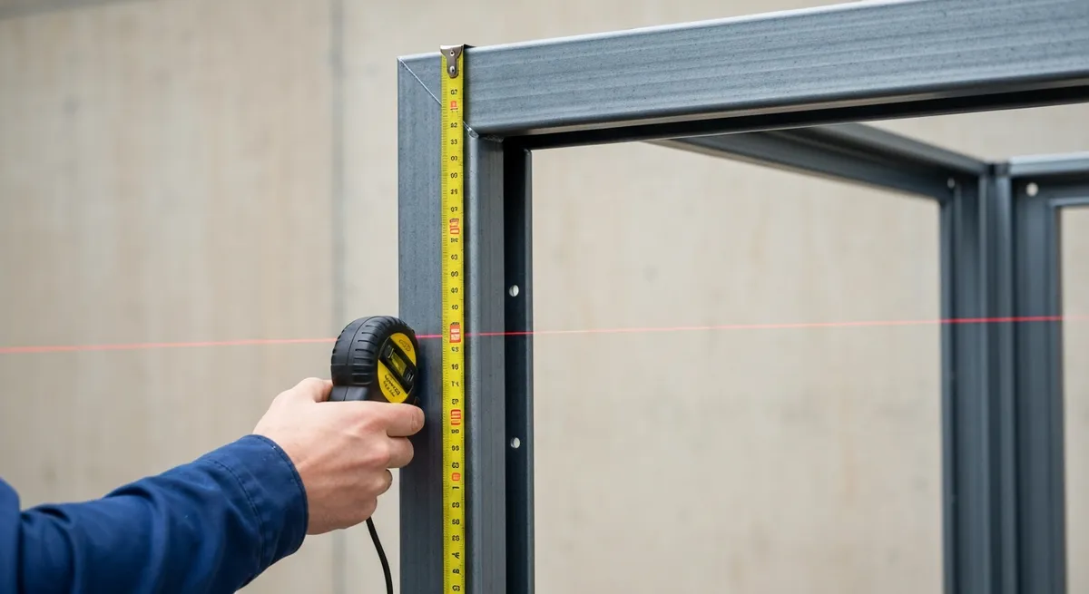 Приложите строительный уровень к вертикальным сторонам проёма и горизонтальной перемычке сверху. Отклонение до 5–7 мм считается нормой и легко компенсируется при монтаже. Если отклонение больше 10–15 мм, об этом нужно предупредить мастера заранее.